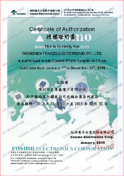 2019年COSMO授權(quán)證明